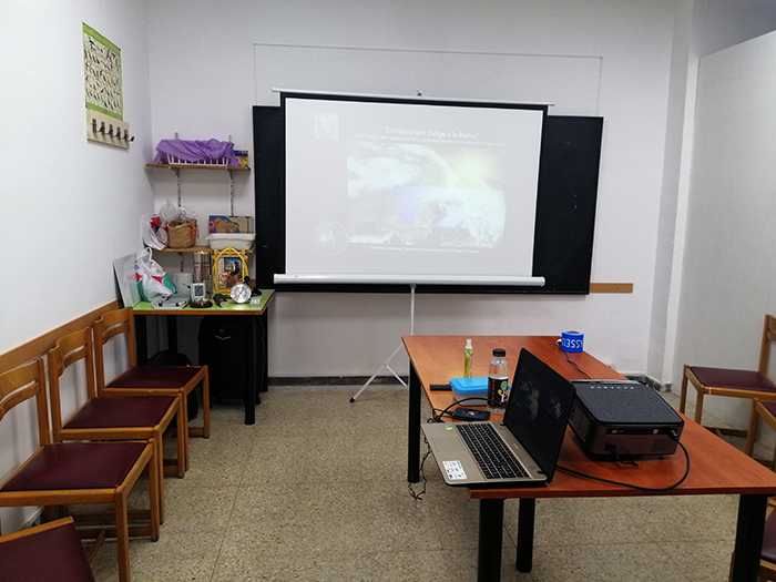 Y si no tienes proyector o pantalla, el equipo de la Asociación Ecometta te lo facilita.