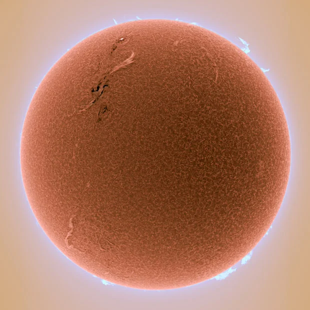 Alan Friedman de Búfalo, Nueva York es un entusiasta de la fotografía astronómica amateur que captura fotografías increíbles del Sol a través de un telescopio en su patio trasero. Sus fotografías muy detalladas muestran el sol de una manera imposible de ver a simple vista. El uso de filtros especiales permite capturar las fotos sin destruir su cámara ni sus ojos.